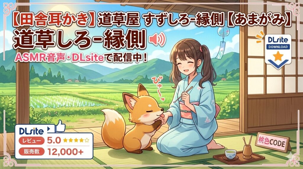 「【田舎耳かき】道草屋 すずしろ-縁側【あまがみ】」はどこで聴ける?DLsiteでの配信情報・口コミ・魅力を徹底解説 「【田舎耳かき】道草屋 すずしろ-縁側【あまがみ】」は、人気サークル「桃色CODE」が手がけるASMR音声シリーズ「道草屋」のすずしろ担当... -