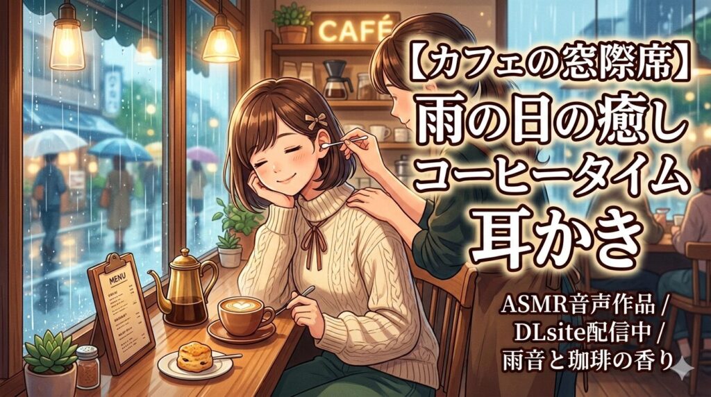 「【カフェの窓際席】雨の日の癒しコーヒータイム耳かき」はどこで聴ける?DLsiteの配信情報・魅力・口コミまとめ 「【カフェの窓際席】雨の日の癒しコーヒータイム耳かき」は、カフェの窓際席で雨音を聴きながらコーヒーの香りに包まれ、耳かきで癒される... -