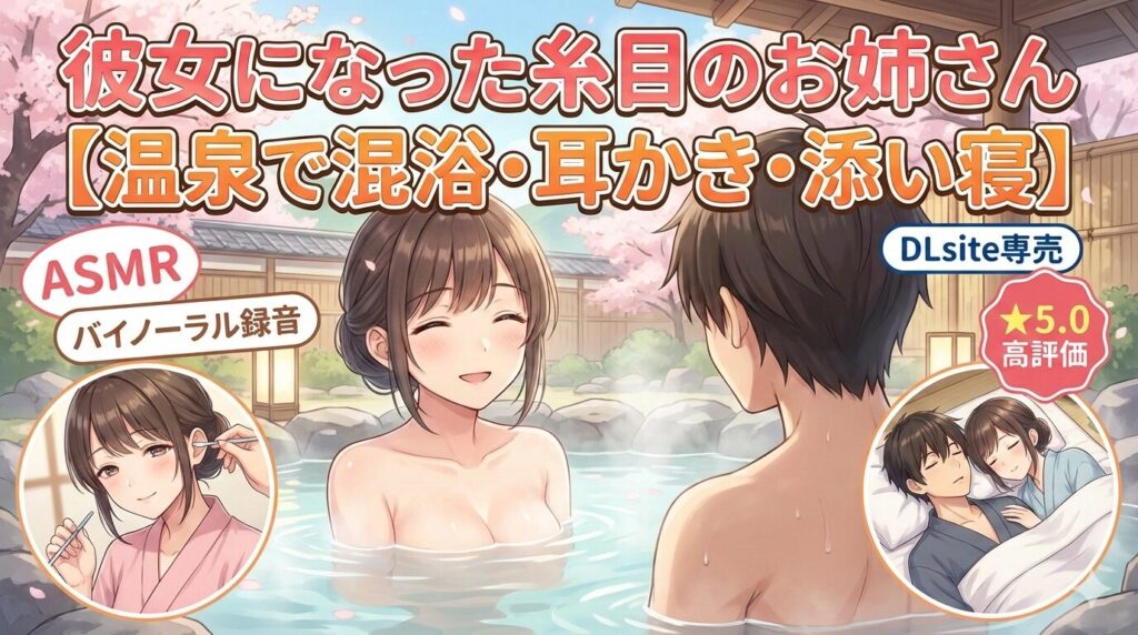 「彼女になった糸目のお姉さん【温泉で混浴・耳かき・添い寝】」はどこで聴ける?DLsite配信情報まとめ
