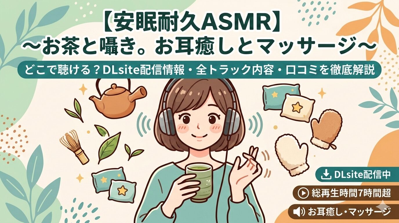 【安眠耐久ASMR】~お茶と囁き。お耳癒しとマッサージ~はどこで聴ける?DLsite配信情報・全トラック内容・口コミを徹底解説