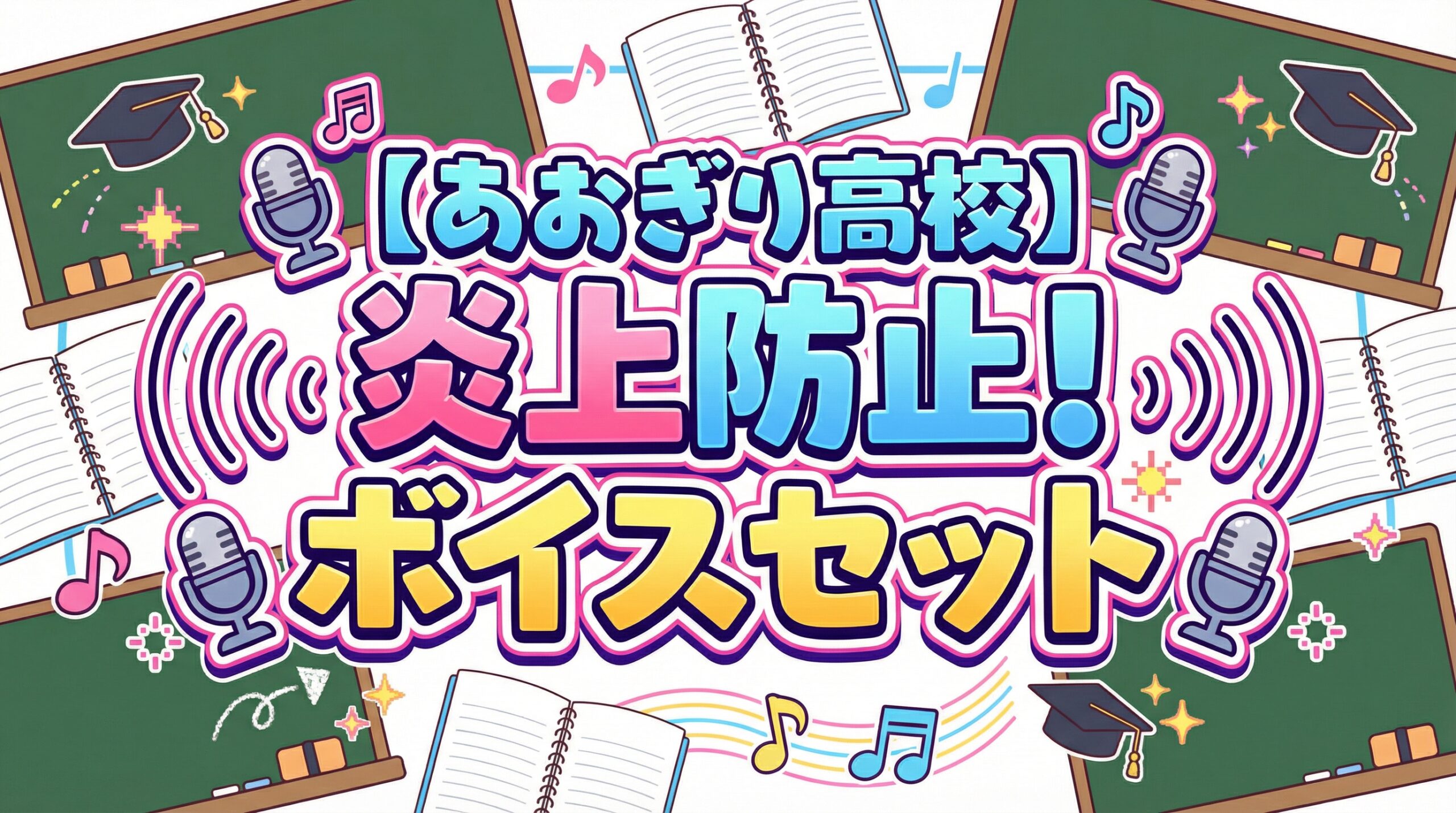 「【あおぎり高校】炎上防止!ボイスセット」は、VTuberグループ・あおぎり高校のメンバー13名が出演する全169トラック収録のボイス作品です。DLsiteで配信中で、番組「エンジョー予備校」最終回を記念した録りおろしボイスが楽しめます。