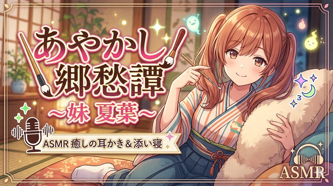 原作「ものべの」の人気キャラクター・夏葉が妹としてあなたを癒してくれるASMR音声作品「あやかし郷愁譚 ~妹 夏葉~」。バイノーラル録音による耳かきや添い寝、全編約2時間20分の大ボリュームで、寝落ち・安眠用としても高い評価を得ています。この記事では、本作の配信先・作品情報・口コミ・見どころを詳しくまとめました。