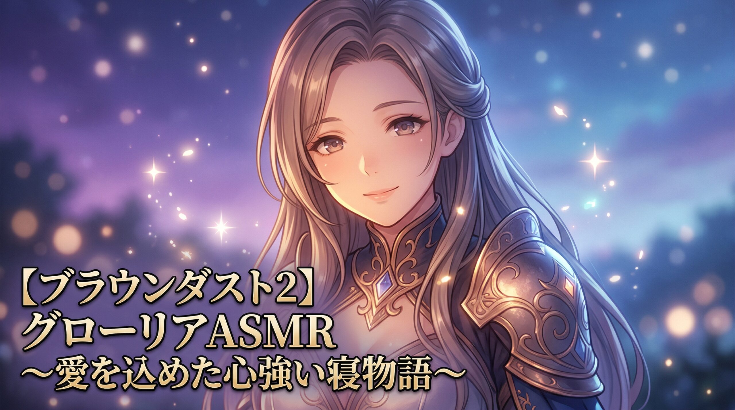 「【ブラウンダスト2】グローリアASMR~愛を込めた心強い寝物語~」は、人気スマートフォン向けアドベンチャーRPG『ブラウンダスト2』の公式ASMR作品です。DLsiteにて配信されており、グローリアの包み込むような優しい声と立体音響技術による没入感あふれる寝物語体験が楽しめます。この記事では、本作の配信情報・作品内容・見どころ・口コミをまとめてご紹介します。