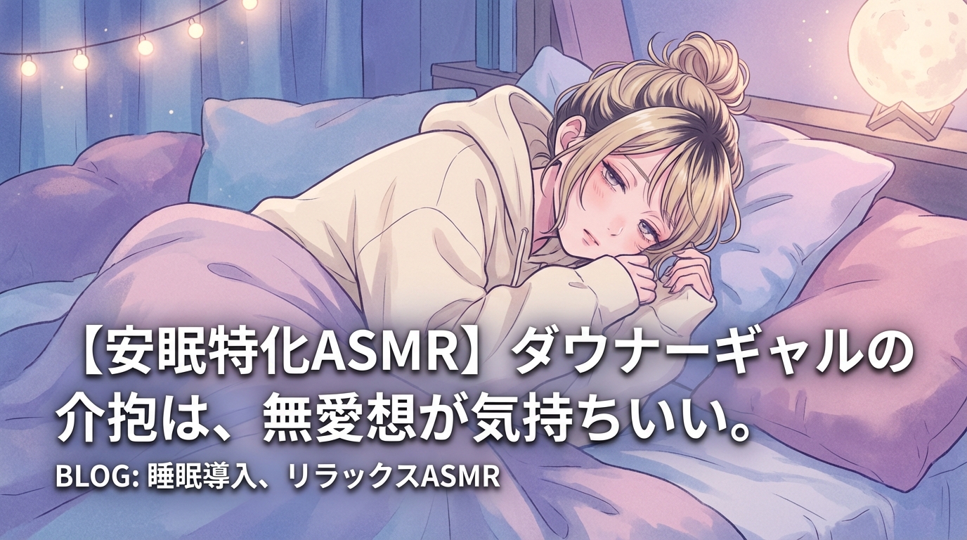 「【安眠特化ASMR】ダウナーギャルの介抱は、無愛想が気持ちいい。」は、だらだらボイスの安眠特化シリーズ第4弾として、ダウナー系ギャル・藍沢アルマ(CV:夏吉ゆうこ)による病室での看病ASMRを全8トラック・約87分で堪能できるDLsite専売の全年齢作品です。Neumann KU-100による高品質バイノーラル録音、無愛想の中に隠れた温かさが光る夏吉ゆうこの演技、そして「眠り」へ自然に導くシナリオ設計により、発売直後のランキング1位獲得、累計2,500本超の販売、レビュー200件超という実績を記録しています。ダウナー系ギャルの不器用な優しさに包まれながら眠りたい方は、ぜひDLsiteでチェックしてみてください。