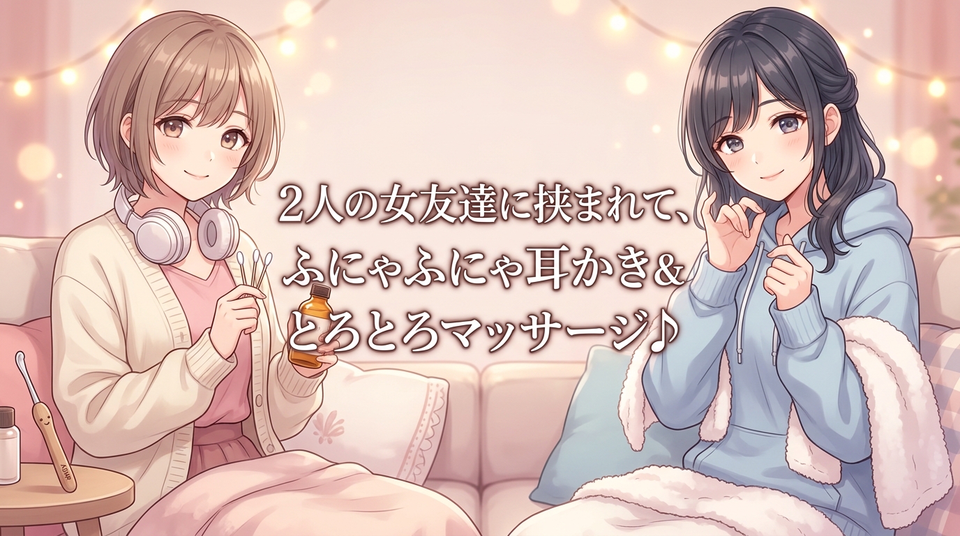 | 作品名 | 2人の女友達に挟まれて、ふにゃふにゃ耳かき&とろとろマッサージ♪ |