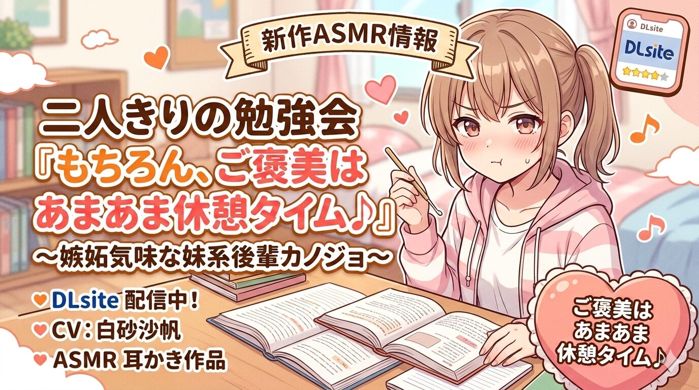 二人きりの勉強会『もちろん、ご褒美はあまあま休憩タイム♪』~嫉妬気味な妹系後輩カノジョ~はどこで聴ける?DLsite配信情報・口コミ・見どころまとめ