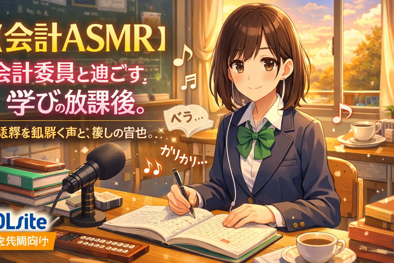 『【会計ASMR】会計委員と過ごす学びの放課後。帳簿を紐解く声と、癒しの音色。』は、「会計を学ぶ」と「ASMRで癒される」という一見異なる体験を、高い完成度で融合させた唯一無二の音声作品です。声優・逢坂菜乃花さんの演じる綾瀬美柚の優しい声と、帳簿や電卓、ペン、耳かきといった多彩な環境音が、放課後の静かな教室という特別な空間を耳元に再現してくれます。