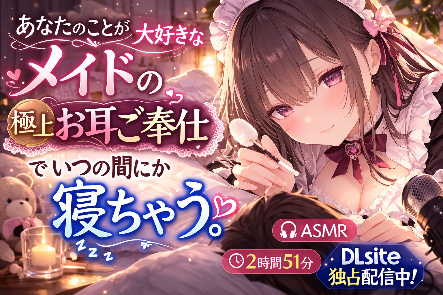 作品名 【ASMR】あなたのことが大好きなメイドの極上お耳ご奉仕でいつの間にか寝ちゃう。【耳かき・オイル・泡・添い寝・心音・耳はむ】