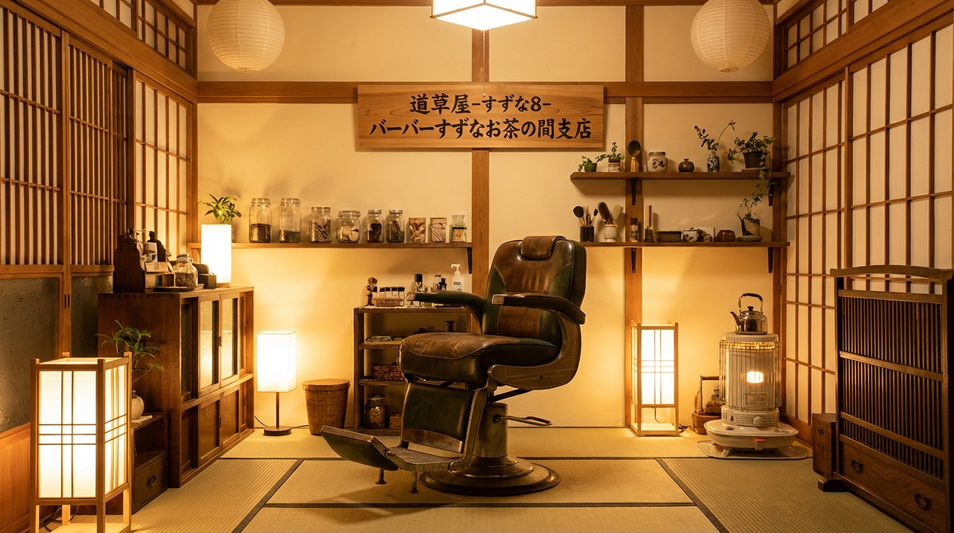 正式タイトル 【散髪シャンプー】道草屋-すずな8- バーバーすずなお茶の間支店【泡泡マッサージ】
