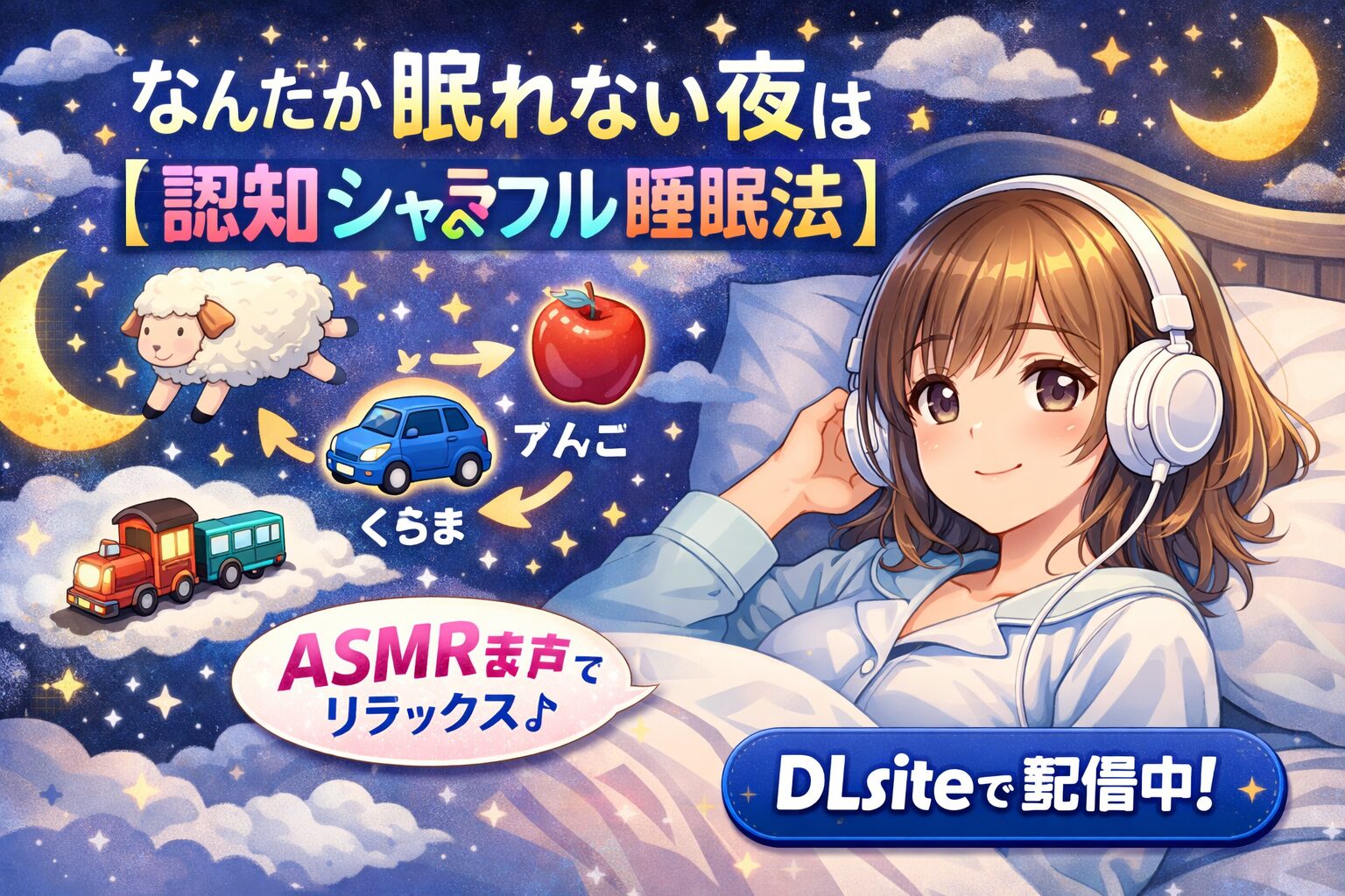 結論:「なんだか眠れない夜は【認知シャッフル睡眠法】」はDLsiteで配信中