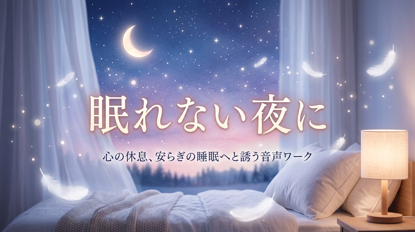「眠れない夜に」は、眠りたいとき、リラックスしたいときに聴くために作られた安眠特化型の音声作品です。ダミーヘッドマイクを使用したバイノーラル収録で、まるで隣に人がいるかのような臨場感を体験できます。布団に横になった状態で聴くことが推奨されており、就寝前のリラックスタイムに最適な構成となっています。