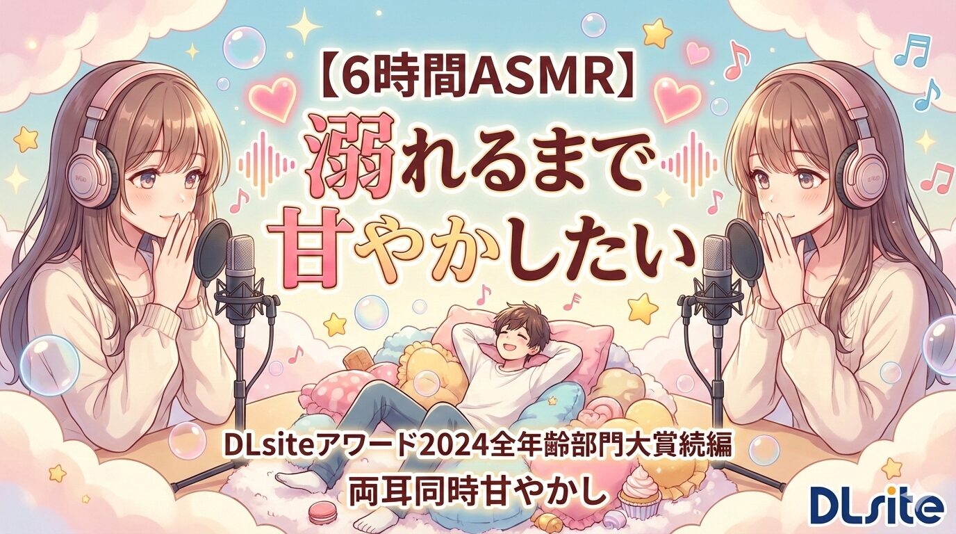 「【6時間ASMR】溺れるまで甘やかしたい」は、DLsiteアワード2024全年齢部門大賞を受賞した前作の正統続編です。西園寺メアリさんが約7時間にわたって両耳を同時に甘やかしてくれるこの作品は、DLsite評価4.91点という驚異的なスコアを獲得しています。本記事では、トラック構成や口コミ、前作との違いまで徹底的に解説します。
