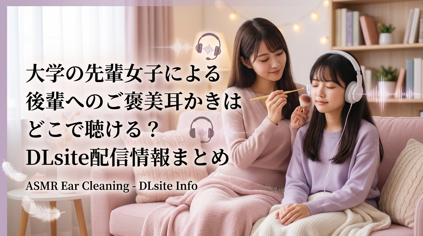後輩キャラによる耳かきに興味がある方は、「後輩彼女の一生懸命耳かき練習」はどこで聴ける?DLsite類似作品・配信情報まとめもおすすめです。先輩から耳かきしてもらう本作とは逆に、後輩側が頑張って耳かきしてくれるという微笑ましいシチュエーションが楽しめます。