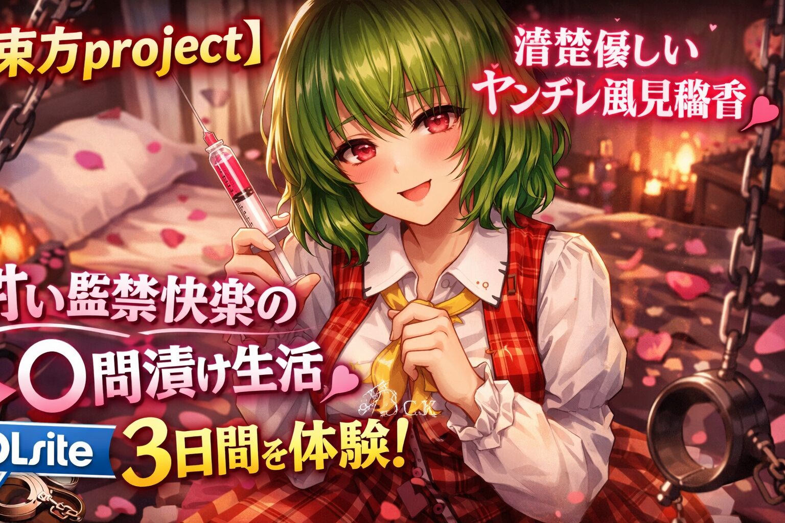 東方projectの人気キャラクター・風見幽香がヤンデレお姉さんとして登場し、甘い監禁生活を耳かきASMRで体験できる本作は、DLsiteにて配信中です。声優・和鳴るせさんの大人の美声と、120分超のボリュームで贈る至福のひとときをぜひ体感してください。