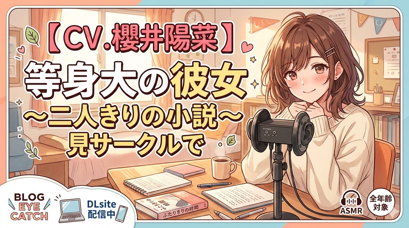 「【CV.櫻井陽菜】等身大の彼女~二人きりの小説サークルで~」は、DLsiteで配信中の全年齢向けASMR音声作品です。小説サークルを舞台にした青春ラブストーリーが、櫻井陽菜さんの自然体な演技とダミーヘッドマイク(KU100)による臨場感あふれる音響で楽しめます。レビュー276件以上の大好評作品を、この記事で徹底解説します。
