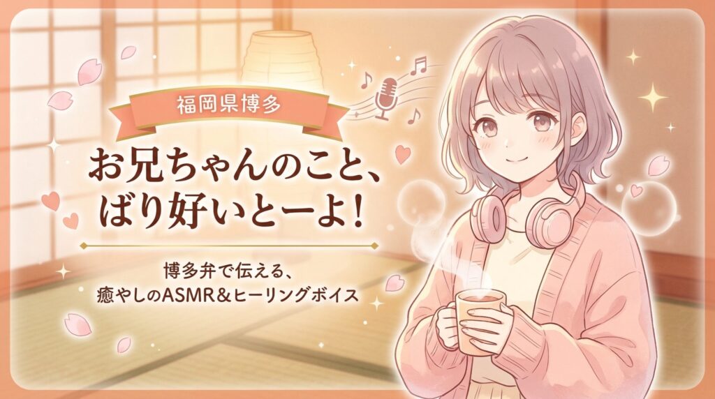 博多弁のいとこに甘やかされる癒し系ASMR作品「お兄ちゃんのこと、ばり好いとーよ!~実家に帰ると、いとこに物凄く癒されちゃった件~」は、DLsiteで配信中です。本格的な博多弁と約1時間50分のバイノーラル収録で、耳かき・添い寝・肩たたきなど至れり尽... -