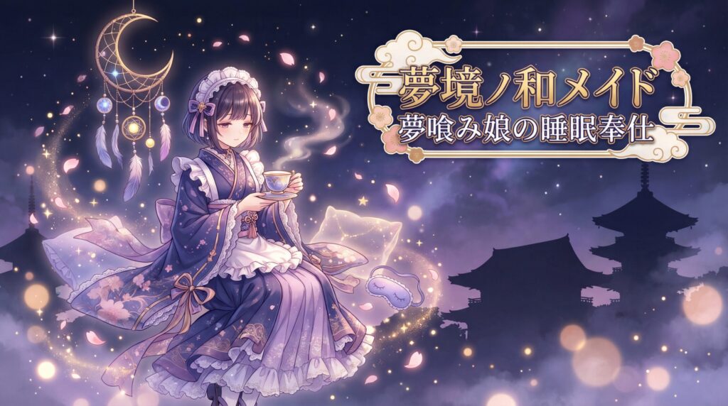 「【ASMR】夢境ノ和メイド 夢喰み娘の睡眠奉仕【KU100】」は、DLsiteにて配信中の全年齢向け睡眠導入ASMRです。サークル「Suirium Drop」の処女作として2026年1月31日にコミックマーケット107で先行頒布され、その後DLsiteでのダウンロード販売が開始され... -