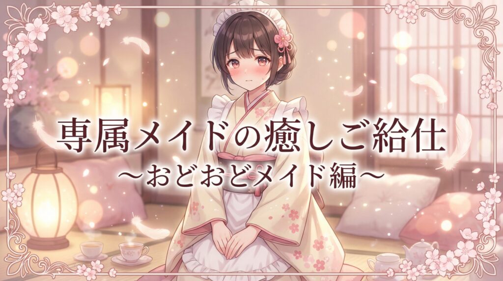 「専属メイドの癒しご給仕 〜おどおどメイド編〜」は、人気声優・後藤彩佐さんが演じる引っ込み思案な専属メイドによる癒しASMR音声作品です。耳かき・お風呂・添い寝など約96分の充実した内容で、DLsiteにて独占配信されています。この記事では作品の詳細... -