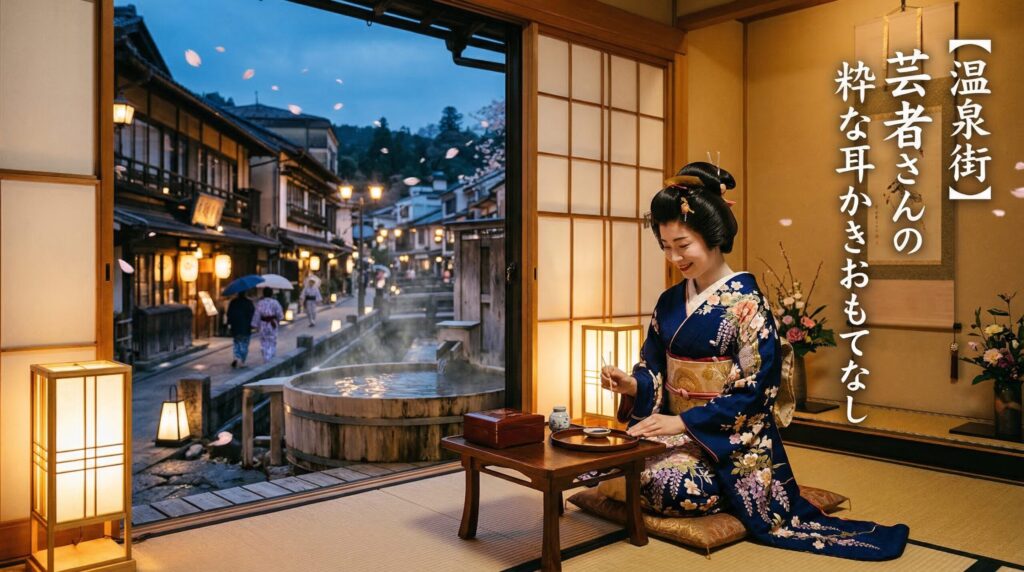 「【温泉街】芸者さんの粋な耳かきおもてなし」を探している方に向けて、結論からお伝えします。2026年2月25日現在、このタイトルに完全一致する作品はDLsiteをはじめとする主要な同人音声プラットフォームでは確認できていません。ただし、温泉街・和風・... -