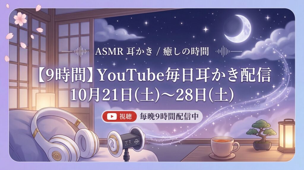 「【9時間】YouTube毎日耳かき配信10月21日(土)~28日(土)」はどこで聴ける?DLsite配信情報まとめ