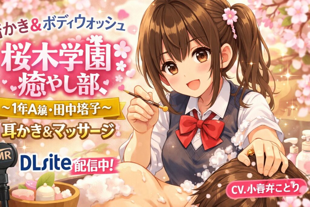 「桜木学園癒やし部~田中塔子編」は、声優・小岩井ことりさんが演じるちょっと生意気な後輩キャラによる耳かき&ボディウォッシュASMR作品です。DLsiteで配信中の本作について、トラック構成や口コミ、購入方法をまとめました。 結論:「桜木学園癒やし部... -