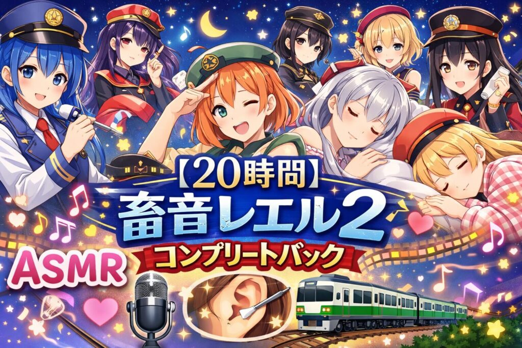 「【20時間】畜音レヱル2 コンプリートパック」は、鉄道擬人化キャラクター「レイルロオド」10人による全年齢ASMR音声作品のバンドル商品です。田所あずさ・上坂すみれ・楠木ともりなど豪華声優10名が出演し、耳かき・添い寝・環境音を20時間たっぷり堪能... -
